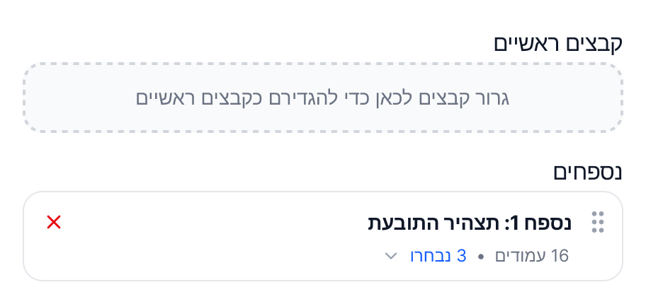 העלאת קבציםכתב הטענות, תצהירים, נספחים וכל מסמך נלווה שצריך לצרף